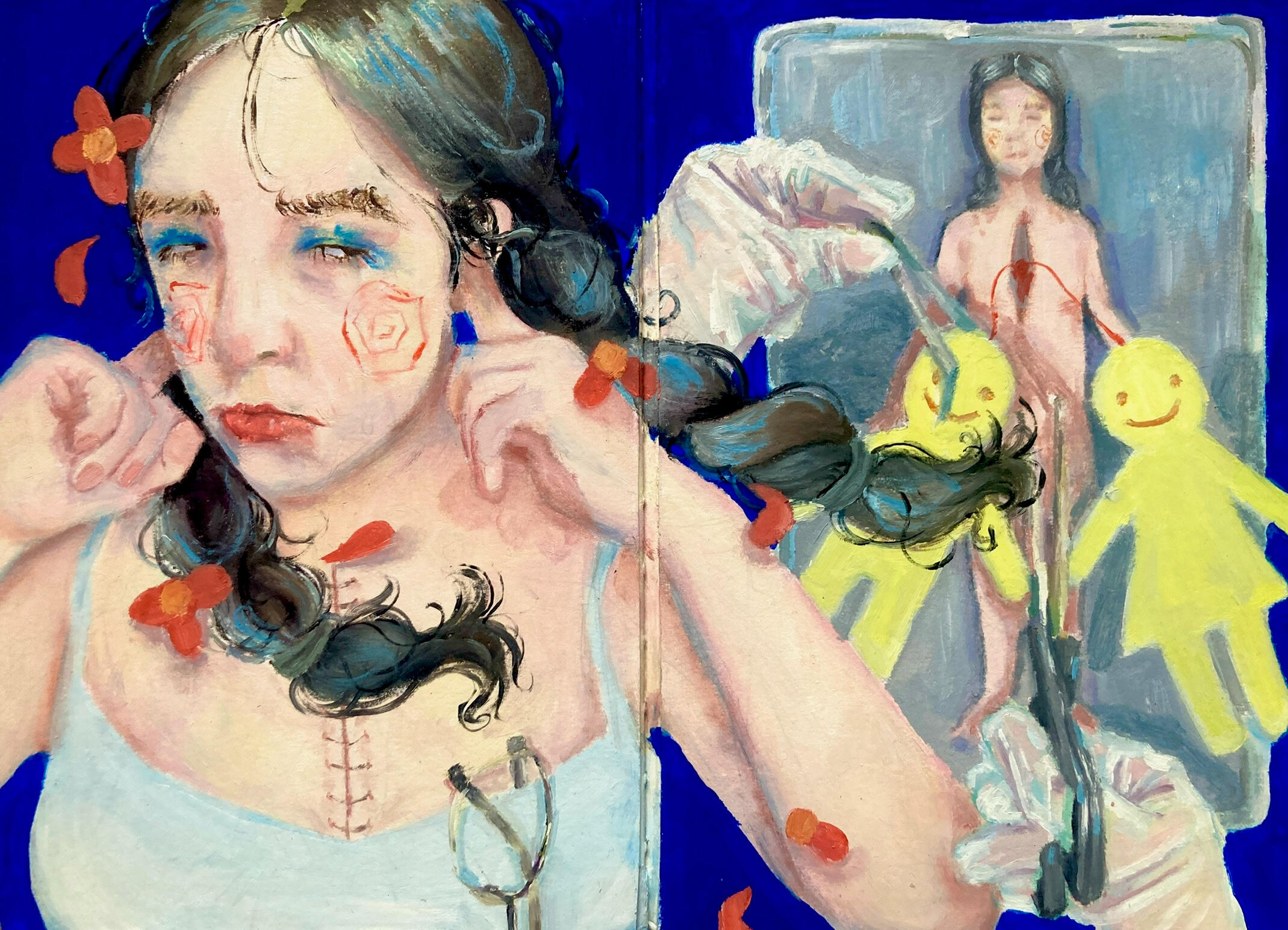 Hi I'm Gisselle, I'm 21 years old and a Mexican-American artist based in Texas. I create artworks based off my personal life dealing with my mental health, issues of my body, and other problems I face throughout my life. I primarily work with graphite, watercolor, oil paint, and oil pastels, but sometimes create art digitally.